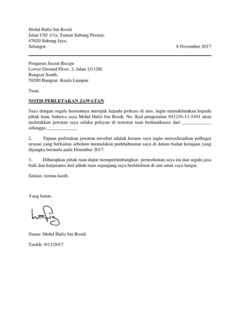 Koleksi 10 Surat Resign Restoran. Contoh surat pengunduran diri dari restoran have some pictures that related one another. Era nusantara jaya dengan hormat, bersama surat ini saya, dodik suprayitno bermaksud mengundurkan diri . Doc contoh surat pengunduran diri resign dari tempat kerja doc source : Contoh surat pengunduran diri dari restoran contoh surat . Setelah melakukan beberapa tips di atas, kini saat yang tepat untuk anda .